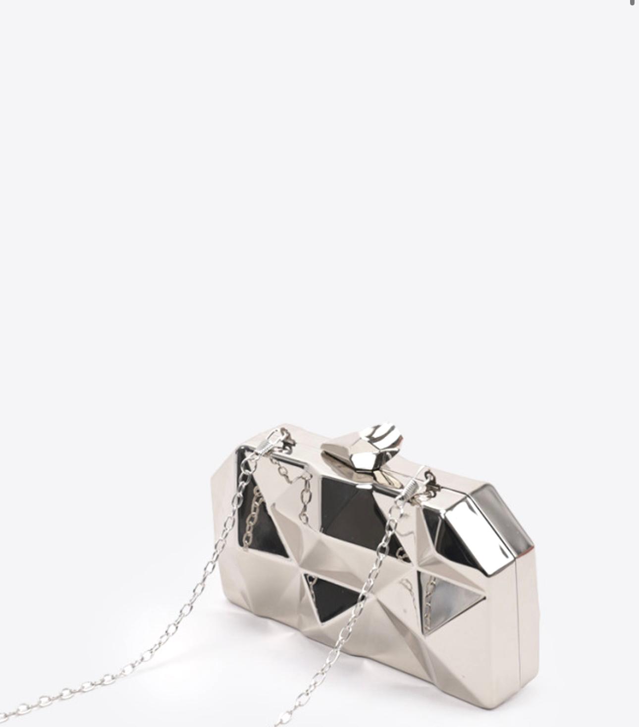 La pochette Essence se distingue par son design géométrique et sa brillance sophistiquée.